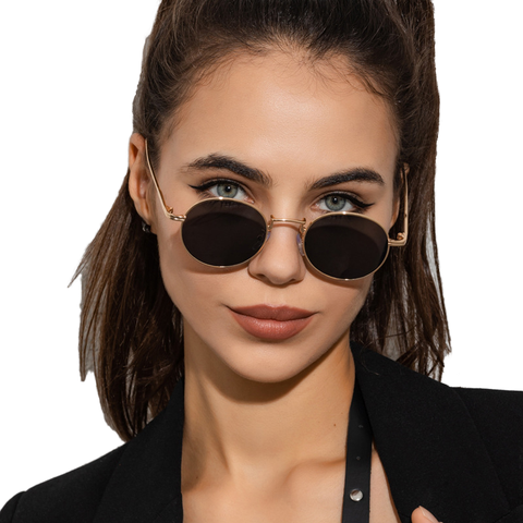 Skyway New Arrival retro nhỏ Khung kính mát 2025 New hợp thời trang sang trọng tùy chỉnh Kính mát kim loại khung hình bầu dục thời trang Kính mát
