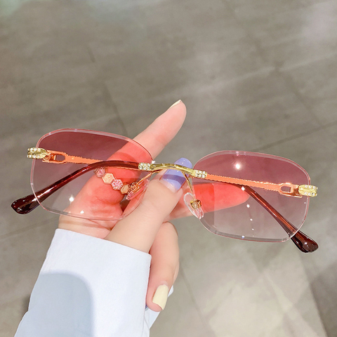 Skyway 2025 tùy chỉnh cổ điển phụ nữ Kính mát thời trang không có vành hình chữ nhật Khung kính mát Gradient ống kính Y2K phong cách kính mát